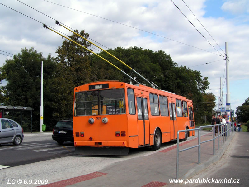Spolu s trolejbusem 306 poslední provozní Škoda 14Tr s cedulkovými orientacemi.